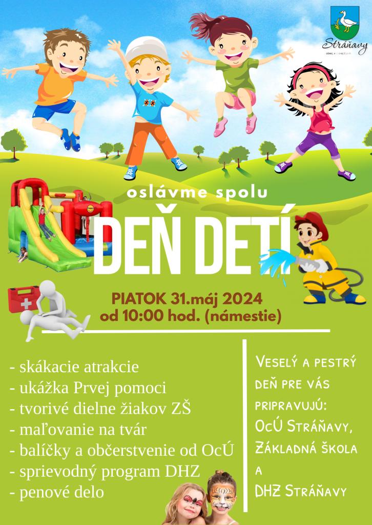 Deň detí pripravujú: OcÚ Stráňavy, ZŠ a MŠ Stráňavy a DHZ Stráňavy.